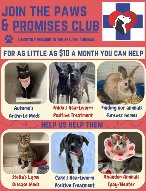 Sponsor the cage of a furry friend with a mounted plaque portraying your logo, or a personal message. You will also receive a charitable receipt and be acknowledged on our Facebook page & website. View Sponsors.